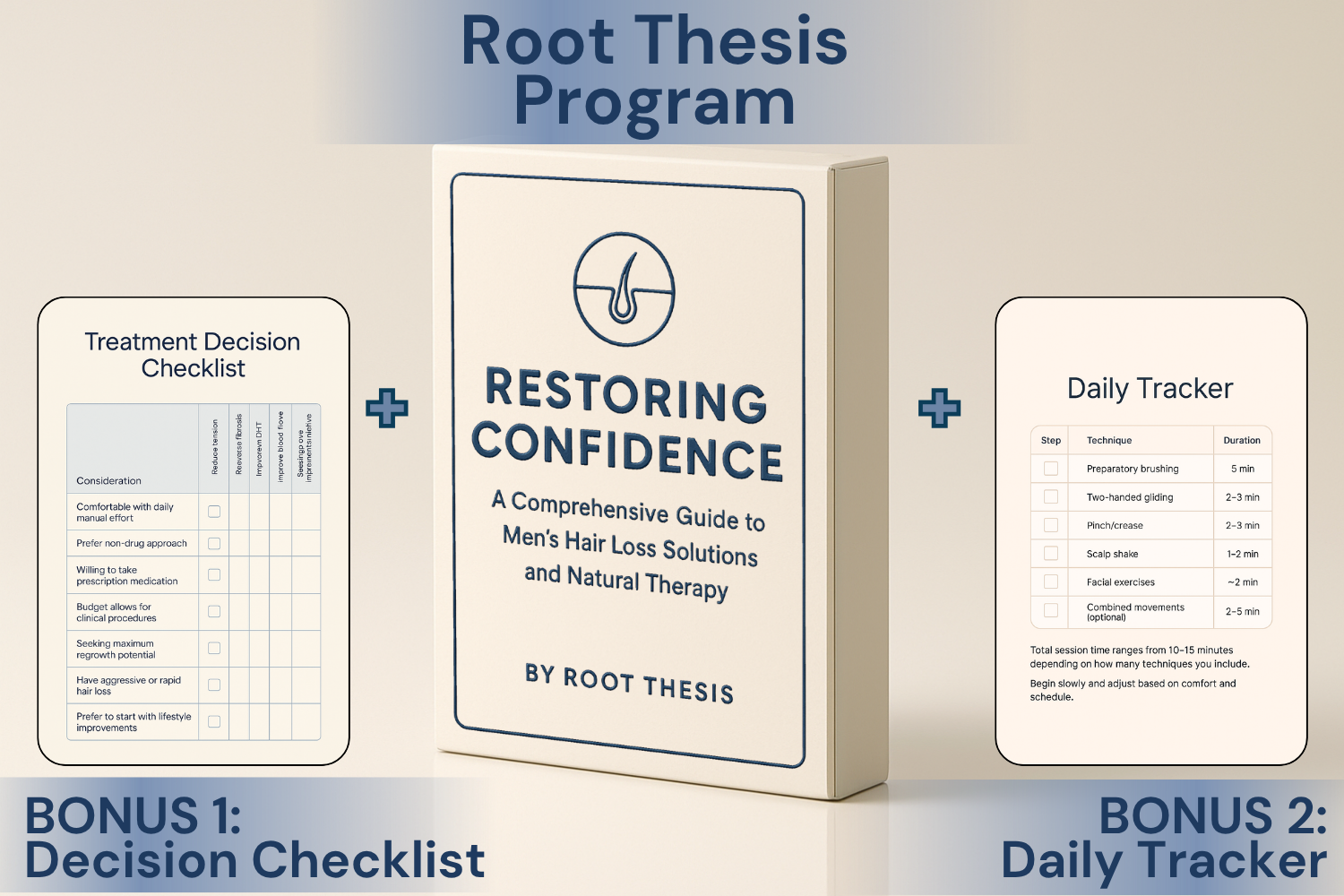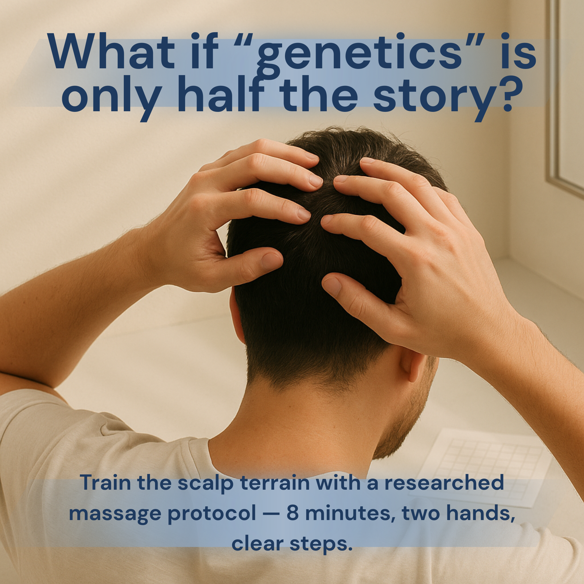 Through a series of simple but meticulously crafted scalp massage techniques during approximately 5-10 minutes a day you will revitalize your scalp and regrow your confidence.